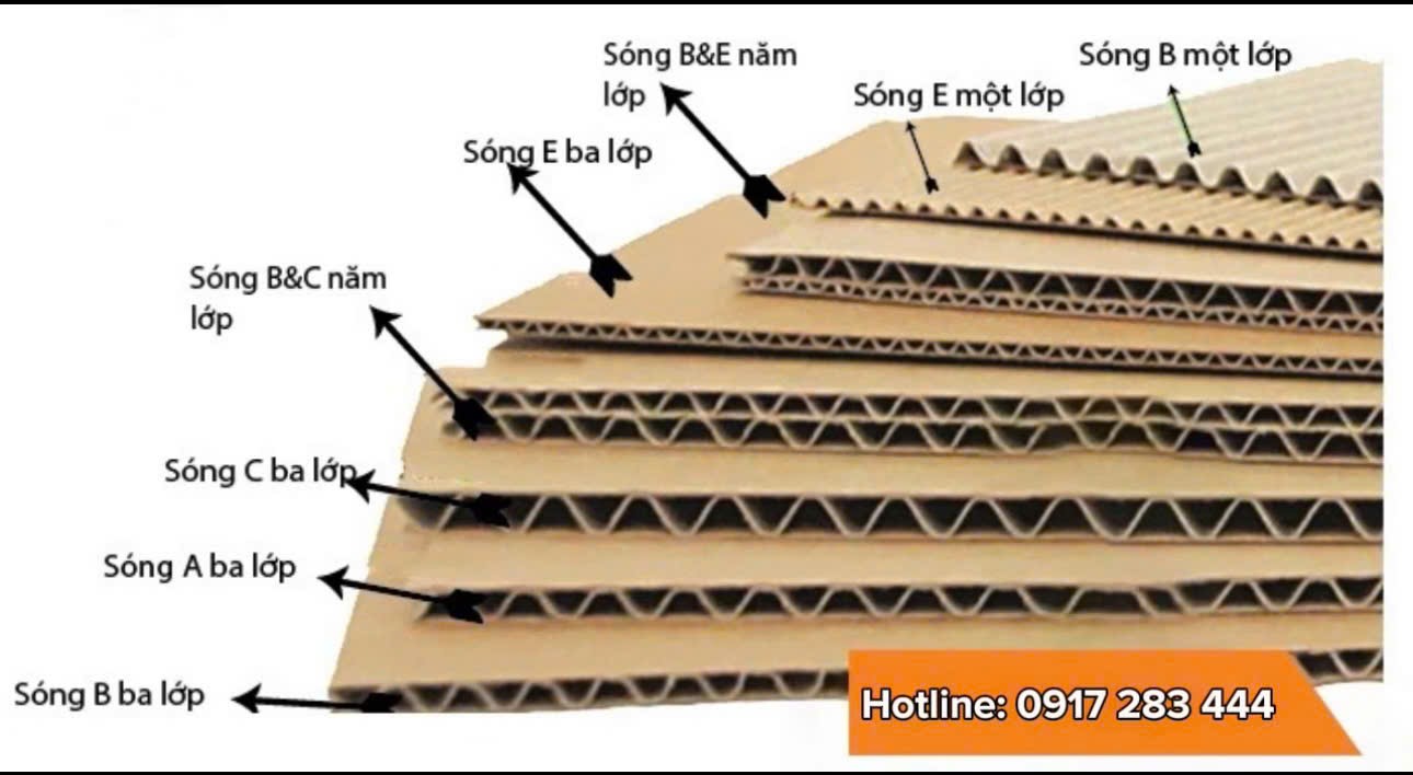 Các lớp của thùng cartonNgoài ra thùng carton có một số kiểu sóng như sau: